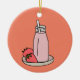 Cute strawberry milkshake design in retro cafe retro milkshake theme. Pink and white color scheme with fresh strawberries. Colorful and cute retro style.