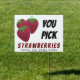 You need this strawberry patch sign if you grow strawberries and have a strawberry farm. These you-pick signs are perfect to direct your customers to your "Pick your own Strawberry Farm". Post these signs when your strawberries are reading for picking. Add your farm business name or farm name to this strawberry farm roadside sign. Coordinate this yard sign with business cards, price sheets, and fun-branded farm tote bags.