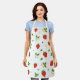 Add a touch of vintage charm to your kitchen with this adorable apron featuring a seamless pattern of ripe red strawberries, white strawberry flowers, and green leaves on a light blue background. Perfect for baking, cooking, or gardening. Makes a lovely gift for strawberry lovers, chefs, bakers, and anyone who enjoys cute and cheerful kitchen accessories.