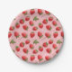 Fun strawberry pattern party paper plates. Features a stylish strawberry pattern, red berries on a pink background.
