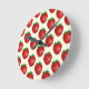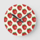 Strawberry Pattern, Red Strawberries, Fruit, Leaf Round Clock