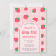 Strawberry Pink Cute Berry First 1st Baby Birthday Invitation