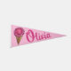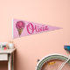Pennant features an original marker illustration of a scoop of pink strawberry ice cream in a waffle cone. Just personalize with your information.