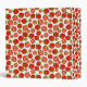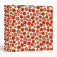 Standard three ring binder with a bright red strawberry pattern.