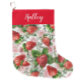 Strawberry Rose Floral Custom Name Large Christmas Stocking