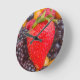 Wall clock with image a red strawberry lying on top of a mix of other berries. Customisable.