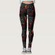 Red strawberry berry with green leaves and a text Strawberry soul with dominating note of love. Love and romance theme. Dark or black product. One of a kind woman's, female leggings for fun and good mood. Do not forget to change the background color.