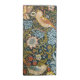 Vintage Victorian William Morris Pre-Raphaelite textile pattern titled Strawberry Thief, 1883. This design features a floral background with blooming spring flowers, fruit, wild strawberries and two pairs of birds on a dark blue background. The berry thieves are thrushes.