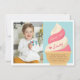 Strawberry Vanilla Ice Cream Kids Birthday Photo Thank You Card