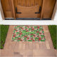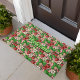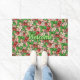 Strawberry leaves, fruits and flowers. Custom background color. Seamless pattern. Custom text.
