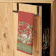 A gift for mom, a kitchen towel saying "Mom's Kitchen" on a green background with a strawberry wreath and teapot at each end of the towel.