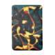 The image, with a cyano background and yellow ribbons with red and black burnt-like parts, can be mistaken for flawed spray(the last spit of spray paint) or when looking at a long distance it may look like velvety or terry cloth.
