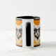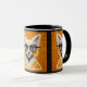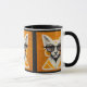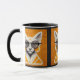 Modern, street art style cat wearing glasses on an orange and black background mug. Perfect for your kitchen and dinning needs.