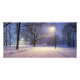 Panoramic view of evening winter landscape. View of covered in snow trees in park and street lights in Riga, Latvia
