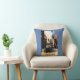 Street View with Couple & Tower Clock Rail Throw Pillow