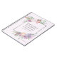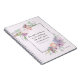 A pretty feminine Christian notebook, featuring a hand drawn frame with watercolor flowers in pastel pink and lilac. Inside the frame is an editable Bible verse from Proverbs 31:25 Strength and honor are her clothing; She shall rejoice in time to come" (NKJV) in dark gray hand written style font. Personalize with your name. Makes a great gift.