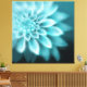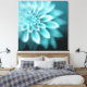 100% hand-painted signed original art. Features a single dahlia in shades of turquoise, black, and white, positioned off-center, painted in a 'soft-focus' manner.