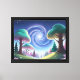 This magical and whimsical digital artwork portrays a gateway to a world of dreams. The centerpiece is a stunning swirling galaxy, radiating soft blue and pink light in the tranquil night sky. In the foreground, two distinct and uniquely shaped whimsical trees stand, guarding a winding path that leads into the distance. Gentle green hills and scattered pink flowers add a cozy, fairy-tale touch.