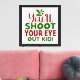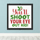 Bring holiday cheer (and laughs!) to your home with this stretched canvas wall print. Featuring the classic line “You’ll shoot your eye out, kid” in big, bold red and green lettering, this festive artwork makes a perfect seasonal decoration or gift for movie fans.