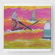 Colorful Sailboats sailing on colorful ocean waters, beautiful pink skies in background, created as Mixed Media Art.