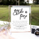 If you're planning a fun photo wall or photo booth at your wedding or engagement party, this sign is for you! Place it next to your props so guests know what to do. Modern and chic design in black and white features "strike a pose" in handwritten style script lettering with a few rhyming lines to direct your guests. Personalize with your names and wedding date, and add an optional wedding hashtag for guests to share on social media.