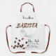 Striking Barista all-over apron. Editable text so you can easily personalise your own name/business. You can clear any text to leave blank if you prefer.