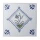 This tile shows a flower in a delicate diamond shaped frame. It is reproduced from one of a set we have of antique hand-painted Dutch Delft tiles dating to the mid-1600s. These tiles can be used as a wall or backsplash tile, fireplace surround, coasters, keepsake boxes, and a host of other decorative and gift items. (Delft tiles look great when you mix different designs on a backsplash. Check out our media pages for examples.) Tiles are available in 4.5 and 6 inch sizes.