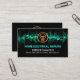 A blue electrical lightning wave streaks across the card's face zapping through a gold bulb logo. Below the gold logo is the business name followed by your prestigious name and contact details.