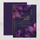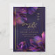 Rich jewel-tone purples and delicate botanical details frame your wedding information beautifully, creating a dramatic yet timeless aesthetic perfect for formal, black-tie, evening, or destination weddings.