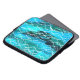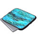 A very distinctive Laptop Sleeve in a brilliant turqoise, black and white, abstract 'Waves' pattern, from a handpainted watercolour design by Judy Adamson.