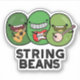 String Beans Funny Vegetable Pun features a cute trio of beans playing string instruments - guitar, electric guitar and banjo. Perfect pun gift for family and friends who love cute music bean puns.