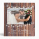 Country barn wood and string lights theme wedding album binder. Add your favorite wedding picture and your personalized text on the front cover.