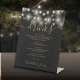 String Lights Black And Gold Wedding Drinks Menu Pedestal Sign