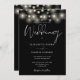 This elegant script black and white wedding invitation, featuring pretty string lights, can be personalized with your information in chic typography with your wedding website details and your QR code on the reverse. Designed by Thisisnotme©