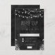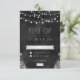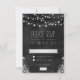 String of Lights Chalkboard © Sunny Mars Designs. Stylish, modern, elegant, classy, trendy, chic customizable formal or cute casual wedding RSVP reply or response cards with a beautiful black chalkboard design featuring bulbs of rope or string lights hanging above with a floral tropical design below.