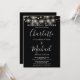String Lights Black White Script Rehearsal Dinner Invitation
