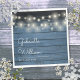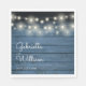 A rustic design featuring pretty string lights and the happy couple's names set in an elegant script above their special date on a blue rustic wood panels background. Perfect for weddings, engagements, and anniversary celebrations. Designed by Thisisnotme©