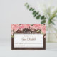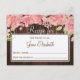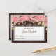 Chic and classy bride to be recipe postcard with blush pink roses and peonies on barn wood dark brown background featuring strings of twinkle lights. Ideal for your rustic country garden | floral themed bridal shower.