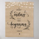Rustic Country Farm Vines, String Lights, Brown Wood, Wedding Reception Party Dessert Poster, a sweet ending to a new beginning.
