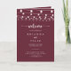This string lights burgundy folded wedding program is perfect for a classic wedding. The design features beautiful hand-painted string lights in a burgundy background.