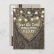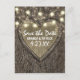 String Lights Carved Oak Tree Save The Date Cards - features a printed oak tree bark background with a carved heart on the front and elegant string lights at the top. See the full matching collection below.