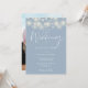 This elegant script dusty blue wedding invitation, featuring pretty string lights, can be personalized with your information in chic typography with your special photo on the reverse. Designed by Thisisnotme©