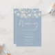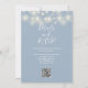 This elegant script dusty blue wedding invitation, featuring pretty string lights, can be personalized with your information in chic typography with your wedding website details and your QR code on the reverse. Designed by Thisisnotme©