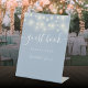 String Lights Dusty Blue Script Guest Book Pedestal Sign