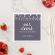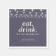 This string lights eat drink we're married wedding napkins are perfect for a classic wedding. The design features white string lights in a purple background.