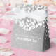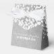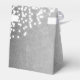 Light gray elegant wedding favor box for modern wedding with string lights accents.