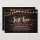 Beautiful Nothing Fancy, Just Love party, Wedding Elopement Announcement / Invitation card, in Modern Rustic Cottage Brown Dark wood, String Lights design. This is perfect for your wedding reception and post-wedding celebration party. Add your details in matching font / lettering.