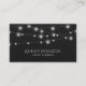 Sophisticated and elegant business cards with a white string light design on a black background. Designed for party planners, event coordinators, wedding consultants, event planners, etc.