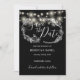A stylish black and white save-the-date card featuring pretty string lights and delicate floral illustrations on a black background. Personalize with your special save-the-date information. Designed by Thisisnotme©