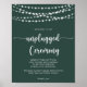 This string lights green unplugged ceremony poster is perfect for a modern wedding or bridal shower. The design features beautiful hand-painted string lights in a green background.
